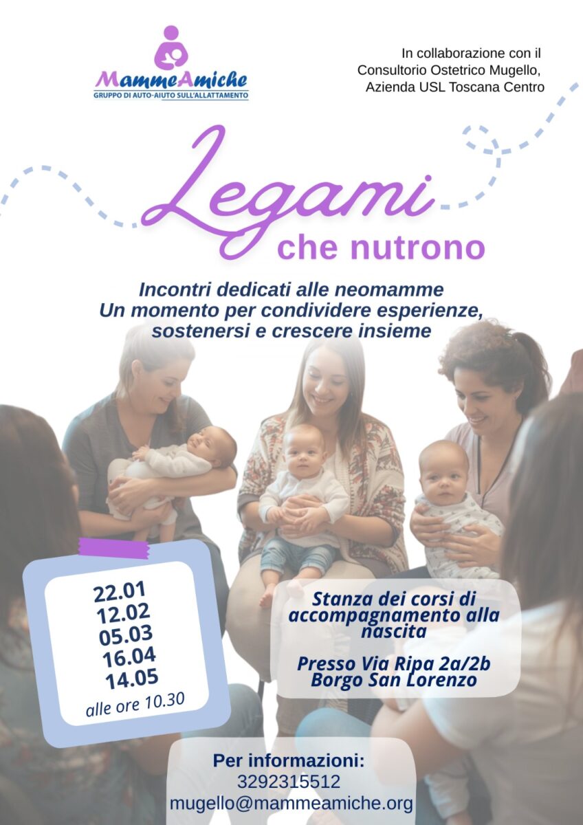 “Legami che nutrono” è un’iniziativa gratuita in collaborazione con il Consultorio Ostetrico Mugello rivolto a mamme in gravidanza e neo mamme con i propri bambini fino a 12 mesi.